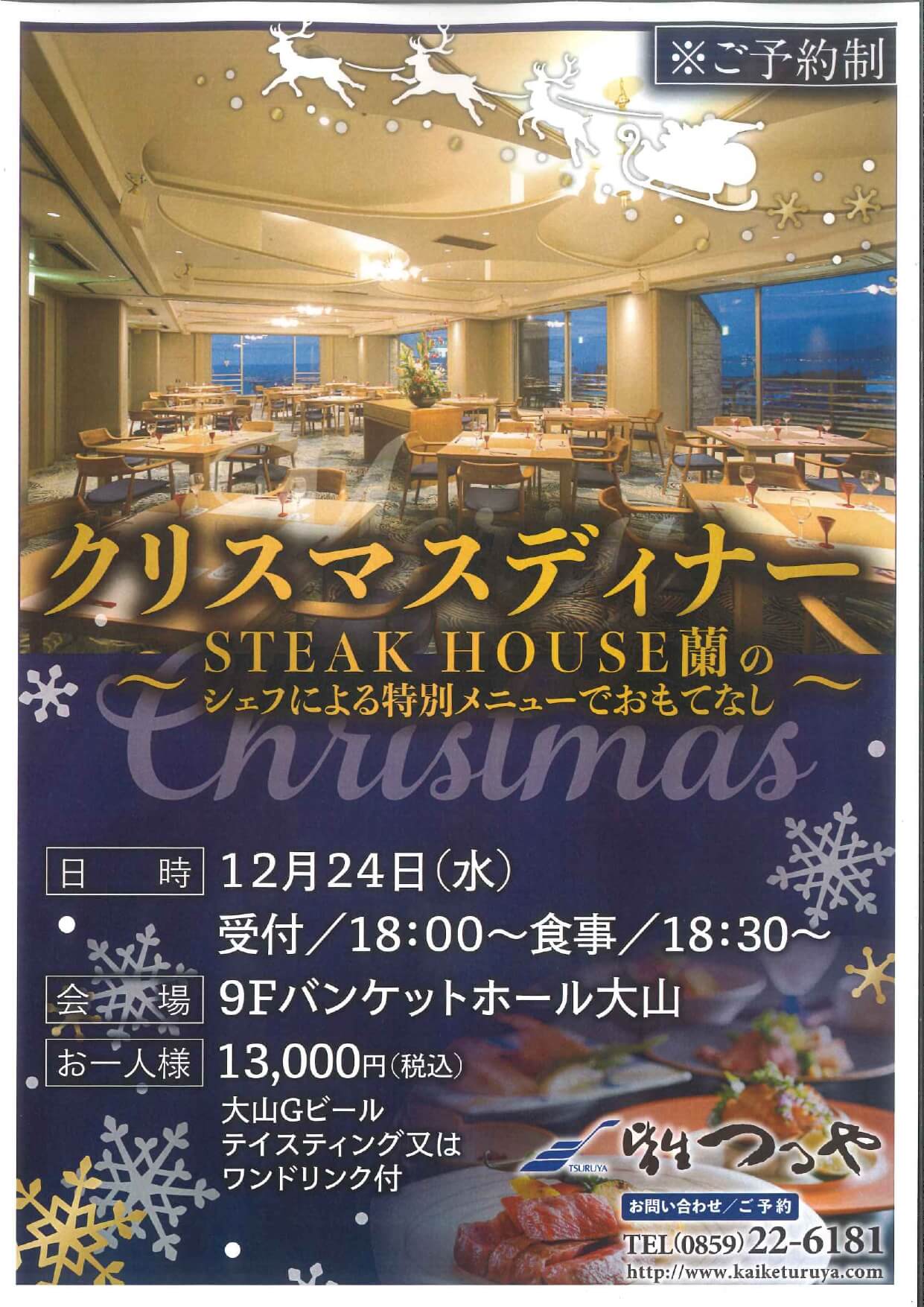 今年のクリスマスイブは、皆生つるや最上階ホールで、心に残るディナーはいかがでしょうか?